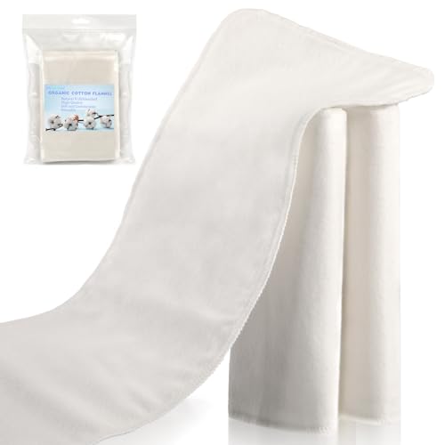 3Pcs Organic Cotton Flannel for Castor Oil Pack, Natural & Unbleached Flannel Cloth for Castor Oil Pack, Reusable & Highly Absorbent Cotton Flannel, Castor Oil Compress Pads for Liver, Abdomen, Joints