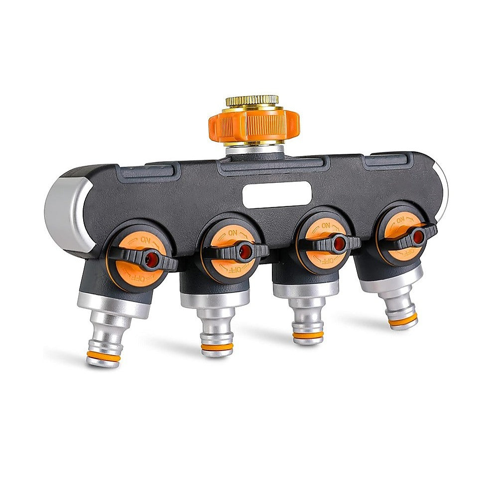 Constructed from high-quality TPR+ABS (thermoplastic rubber and acrylonitrile butadiene styrene) material with an aluminium alloy nut, our four-way water distributor is built tough for Australian conditions, ensuring durability and a lengthy service life. Engineered to prevent leaks and maintain high water pressure when sealed, it's a reliable choice for your outdoor watering needs.