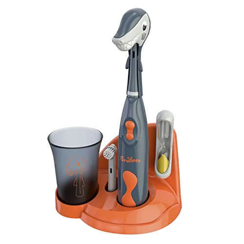 Brusheez® Kids�?Electric Toothbrush Set - Safe & Effective for Ages 3+ - Parent Tested & Approved with Gentle Bristles, 2 Brush Heads, Rinse Cup, 2-Minute Timer, & Storage Base (Shadow The Shark)