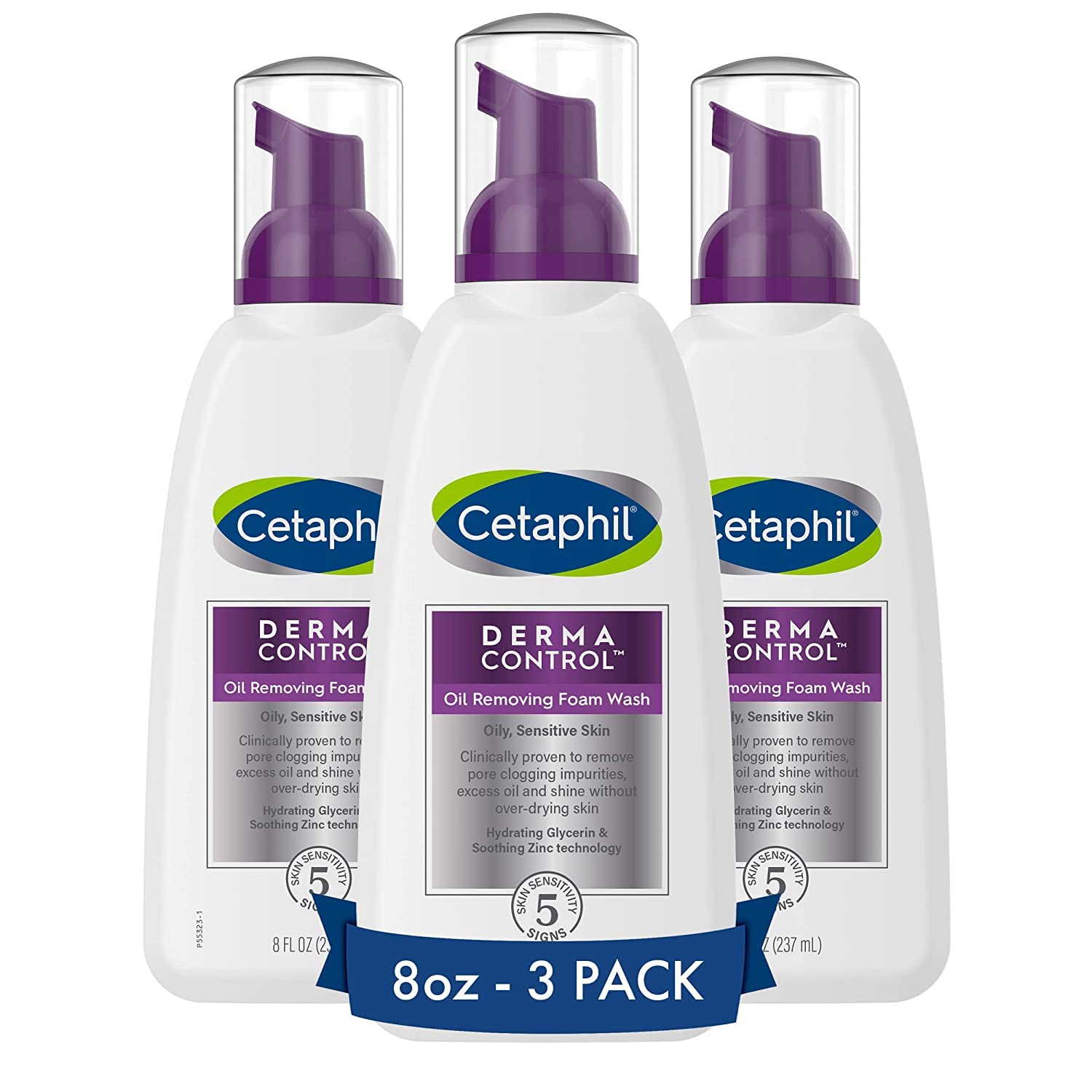 Cetaphil Pro Oil Removing Foam Wash, Foaming Facial Cleanser, Fragrance Free Formula Suitable for Sensitive Skin, 8 Fluid Ounce (Pack of 3)