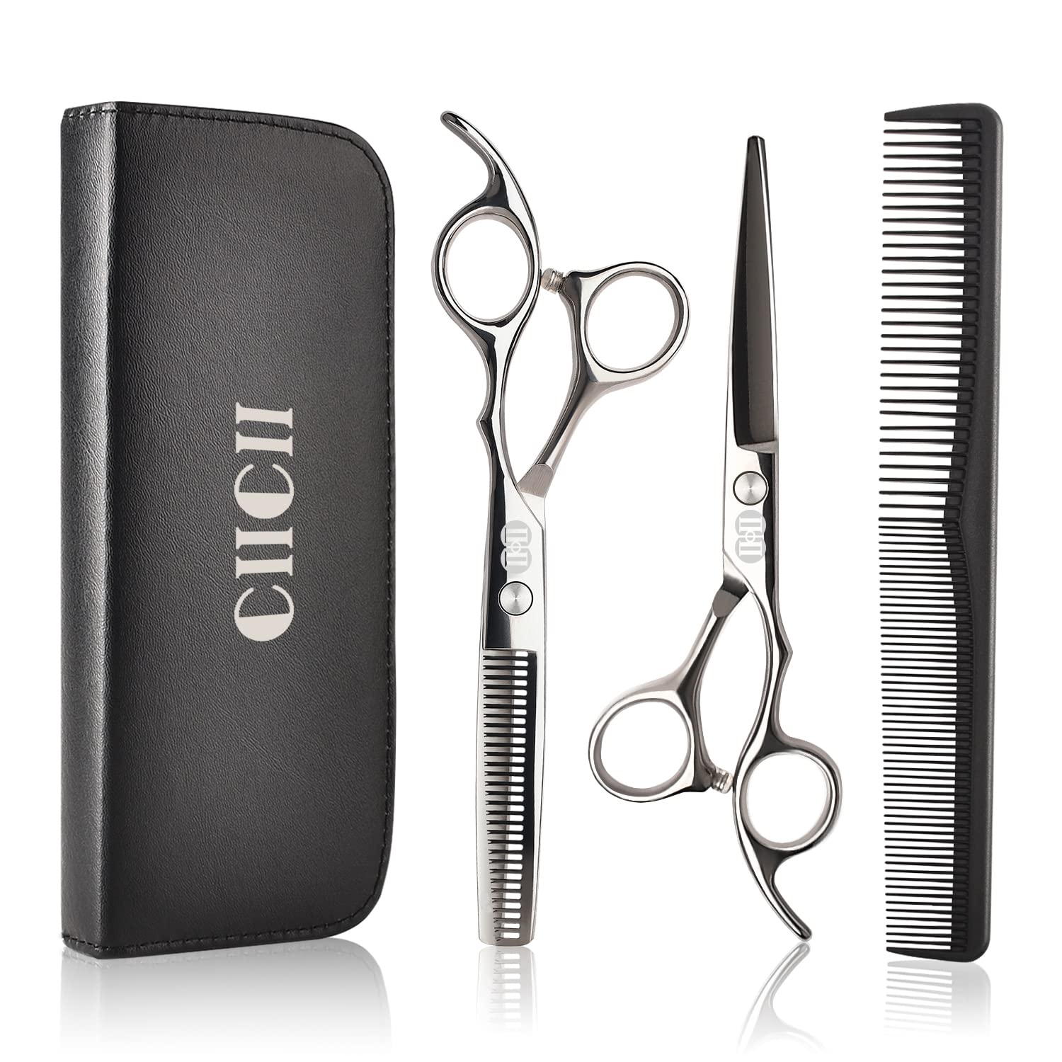 - 🎁Great Gift for DIY Haircuts: CIICII Hair Scissors come with the gift leather bag, It will be great as a gift for your family or friends. CIICII hair cutting scissor and thinning scissor will meet what you need (Beautiful shape, Changing by your heart), CIICII Professional Hair Scissors are safe and simple to use for men women kids/children elderly pets.